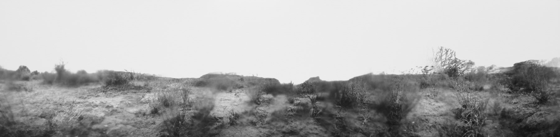 This land is remarkable. It reveals a layered history - geologic, paleontological, and cultural - exposing an unfathomable expanse of time. This series of pinhole photographs aims to record a more immediate experience. Designed specifically for this landscape, the camera is placed directly on the ground, exposing the richness of desert life found mainly at a scale below the knee. Unexpectedly, it captures an astounding range of view from immediate foreground to the far off distance. Scale is amplified. Perspective is shifted. The results are simple atmospheric gradations of light that become place and no-place at the same time. Yet these photographic impressions are deeply rooted to their place, recording a brief moment in time of an eternally shifting landscape.